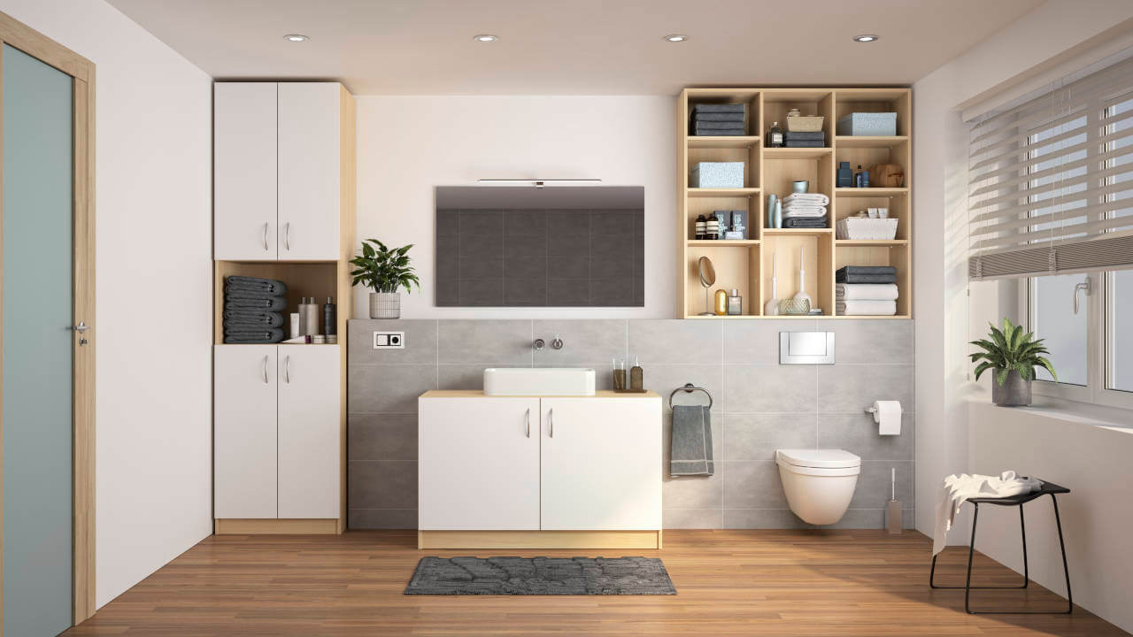 Het ontwerpen van jouw eigen badkamer en het realiseren van je eigen badkamerideeën maakt deel uit van ons bedrijfsmodel voor op maat gemaakte badkamermeubels. Nadat je alle afmetingen hebt ingevoerd en de keuze aan inrichting en decors hebt gemaakt, is je bestelling klaar. Binnen enkele weken voeren wij jouw planningspecificaties voor betaalbaar badkamermeubilair volgens jouw badkamerideeën tot op de millimeter nauwkeurig uit Duitse productielocaties. Het badkamermeubilair wordt dan binnen Nederland gratis geleverd. Het enige wat je hoeft te doen is de badkamermeubels zelf in elkaar zetten. Hier helpt onze montagehandleiding je verder. Klaar! Nu zal je begrijpen waarom onze badkamermeubels zo goedkoop zijn. Wij belonen je inzet voor de configuratie van je badkamer en de montage van je badkamermeubels met redelijke prijzen. Online zelf geconfigureerde badkamermeubels zijn daarom geen geheime tip, maar een beproefd productaanbod. Breng jouw badkamerideeën vandaag nog in de praktijk en begin met de planning!