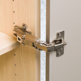 jouwMaatkast.nl gebruikt alleen de merkscharnieren van de firma Blum. Deze zogenaamde topscharnieren hebben standaard een openingshoek van 110 graden, naar keuze vindt u ook uitvoeringen met openingshoek van 170 graden. De topscharnieren zijn gemaakt van staal en bestaan uit een top, grondplaat en scharnierarm. Een dempingsmechanisme is in de scharniertop geïntegreerd. De deuren zijn daardoor flexibel in te stellen, hangen altijd recht en sluiten zachtjes.