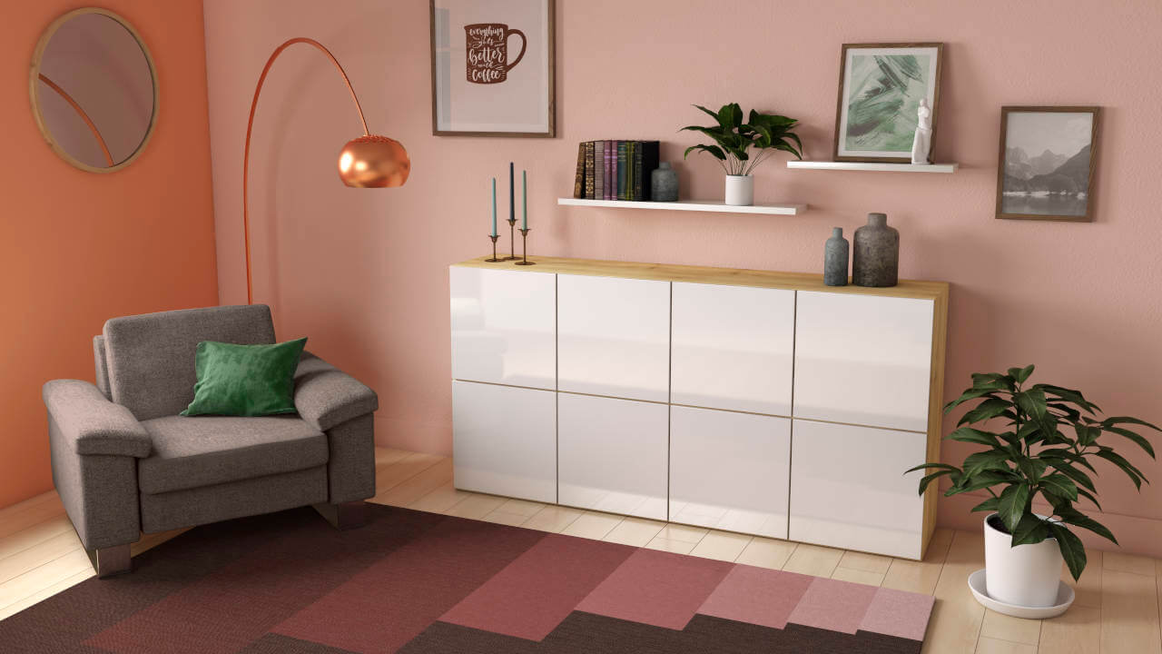 Een zeer chique en trendy variant voor een telefoonkastje op maat is het sideboard. Bij jouwMaatkast.nl vind je het sideboard-model „Laura", dat je afhankelijk van de breedte met één of meerdere deuren kunt uitrusten. Dit sideboard op maat wordt gekenmerkt door de volgende eigenschappen: