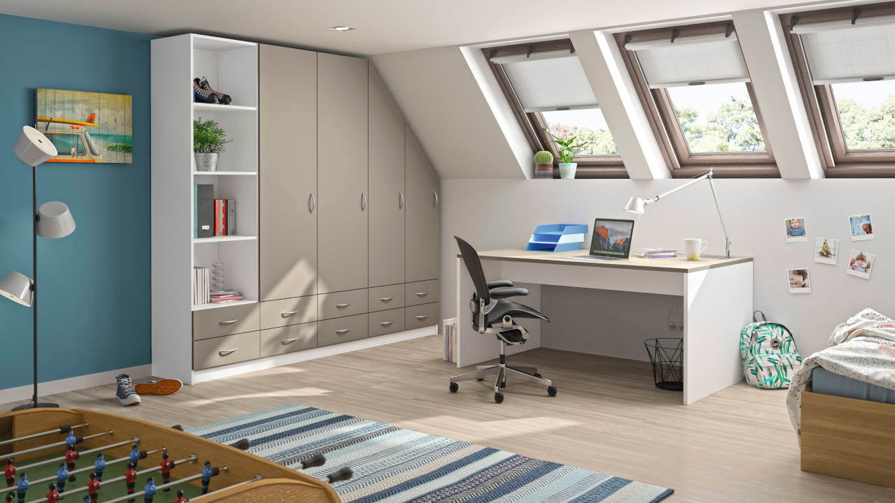Daarnaast kun je deze kast natuurlijk aanvullen met andere meubels, bijvoorbeeld een kledingkast in dezelfde stijl. Met de onlineconfigurator kun je je creativiteit de vrije loop laten en vervolgens werkelijkheid laten worden. Profiteer van de talloze designopties en laat jouw kamer tot leven komen met op maat gemaakte meubels.