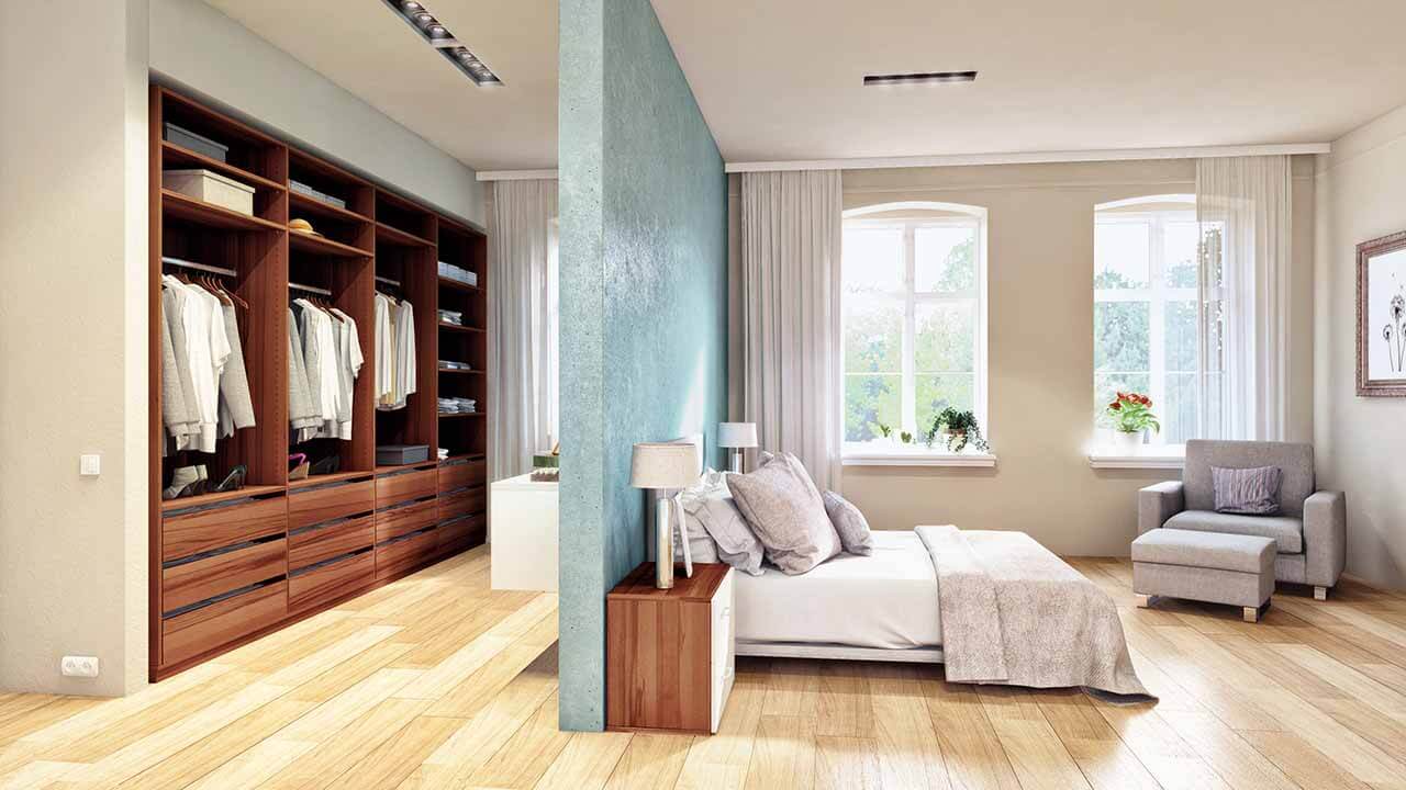 Een grote open ruimte waarin je leeft en slaapt, kun je het best opdelen. Daarvoor hoef je geen nieuwe wanden te laten plaatsen. Een slaapkamerkast op maat kan prima dienstdoen als roomdivider. Daardoor ontstaat er een knus slaapgedeelte en kan de rest van de kamer als woongedeelte worden gebruikt.