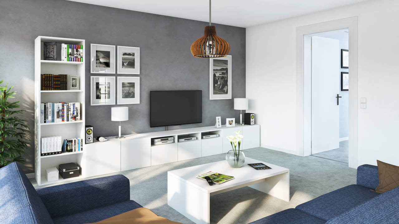 Met een tv-wandboard geef je een indruk van hoogte aan de kamer.